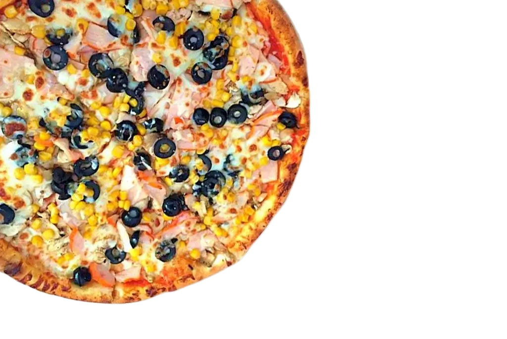 Ingrediente: 540 g (blat, sos pizza, topping mozzarella, piept de pui, măsline, porumb)